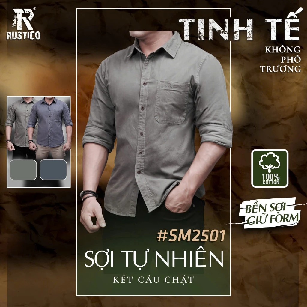 Thông tin sản phẩm Áo sơ mi nam Kaki co giãn, cao cấp The Rustico: